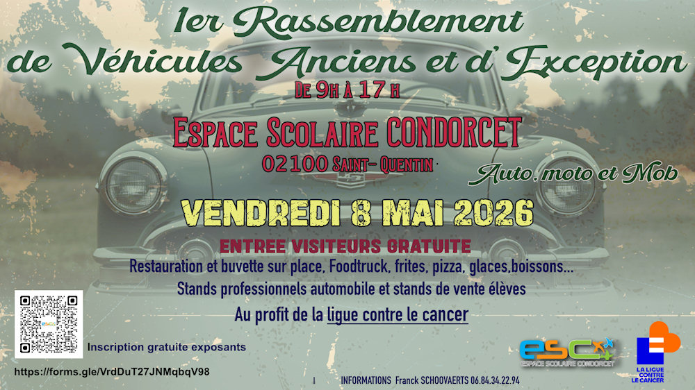 Rassemblement de Véhicules Anciens et d'Exception au profit de la Ligue contre le cancer. 9h00 - 17h00