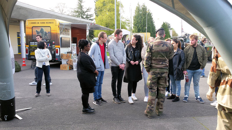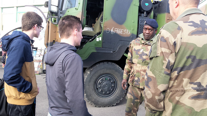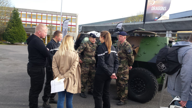 Après une présentation faite par le représentant du CIRFA pour les informer des possibilités de carrière au sein de l'Armée de Terre, en insistant particulièrement sur le besoin de diplômés (en logistique et électrotechnique notamment), les élèves ont pu rencontrer de nombreux spécialistes de tous grades, leur poser des questions variées et assister à des présentations de matériels et de véhicules.