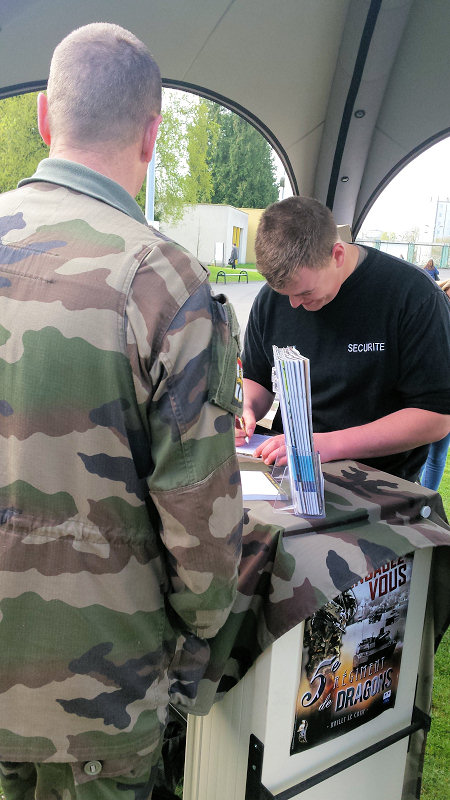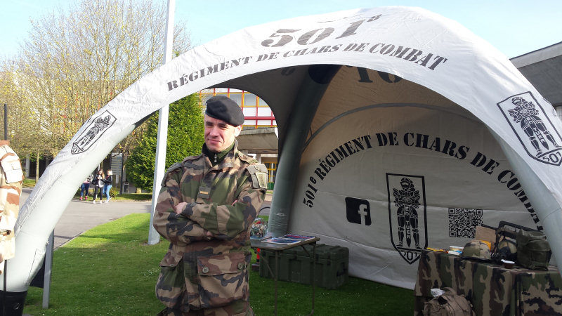 Ce jeudi 23 mars à l'Espace Scolaire Condorcet, des militaires du 5ème Régiment de Dragons, du 501ème Régiment de Chars de Combat et du 8ème Régiment du Matériel sont venus à la rencontre des lycéens dans le cadre du forum de l'Armée de Terre organisé par de CIRFA de Laon.