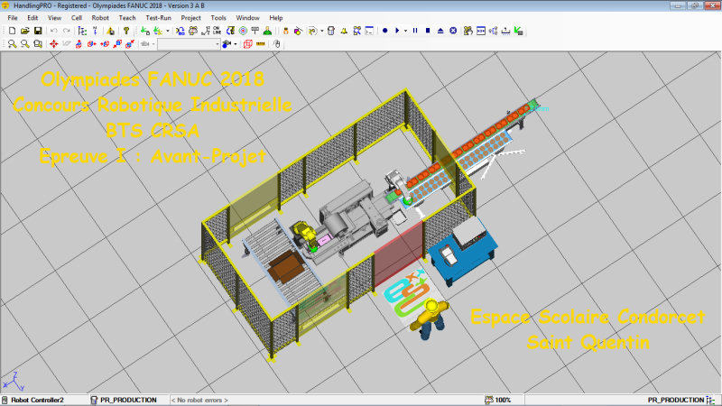 Notre avant projet consistait en la création d'une cellule robotisée complète sous le logiciel de simulation Roboguide de Fanuc, accompagnée de son dossier argumentant notre solution. Il a été réalisé par tous les étudiants de 1ère année de BTS CRSA