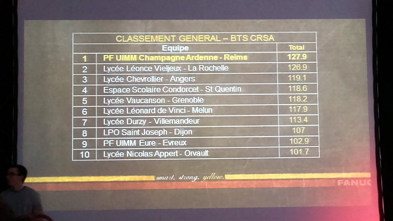 Lors de cette compétition de robotique, le groupe d'étudiant s'est classé 4ème sur les de 45 équipes de BTS CRSA, dont 20 finalistes. Leur classement leur ouvre les portes de la finale nationale des 45èmes Olympiades des Métiers (WorldSkills) dans la catégorie Intégrateur Robotique. Cette compétition se déroulera du 28 novembre au 1er décembre 2018 au Parc des Expositions de Caen.