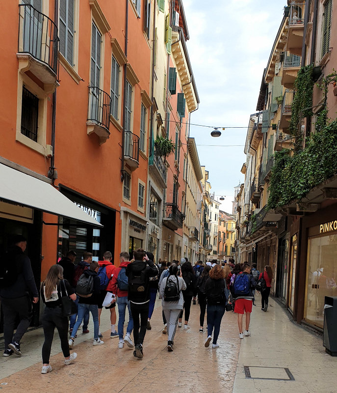 Ce voyage scolaire "itinérant" leur a permis de découvrir Vérone le 1er jour (le balcon de Juliette, la Piazza Erbe, l'église San Anastasia, les arènes).