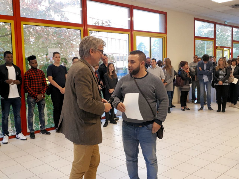 Lors de la cérémonie qui s'est tenue ce vendredi soir au lycée, M. Pedoux, proviseur, a eu le plaisir de remettre le diplôme aux élèves ayant reçu une mention très bien ou bien au baccalauréat général, technologique ou professionnel session 2018.