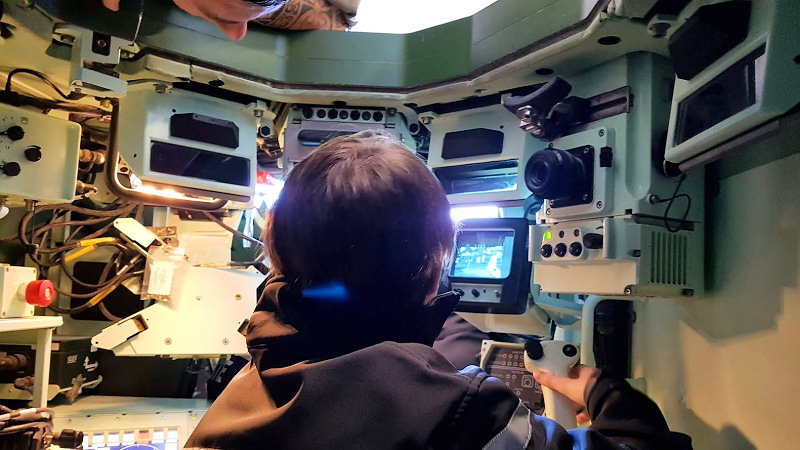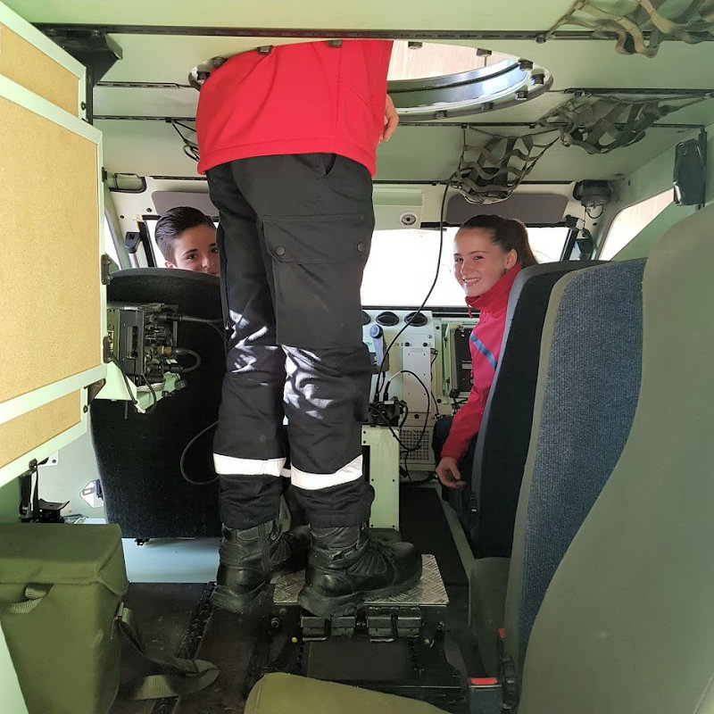 armé d'un canon de 120 et dirigé par 3 honmmes d'équipage. Chacun a pu, au gré des ateliers, s'installer aux commandes de ces véhicules ou endosser