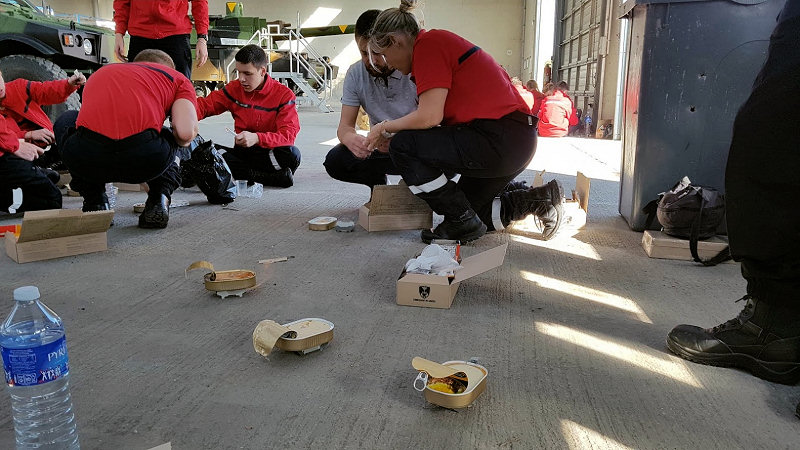 Lors de la pause déjeuner, chacun a pu apprécier les qualités nutritives et gustatives des rations de combat de l'armée française.