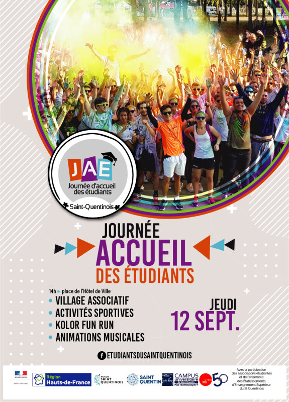 Ce jeudi 12 septembre, la classe de BTS SAM1 a participé à la JAE (Journée d'Accueil des Étudiants). Cet évènement était organisé par l'université de Picardie Jules Verne, la communauté d'agglomération du saint-quentinois, la ville de Saint-Quentin et des associations d'étudiants.