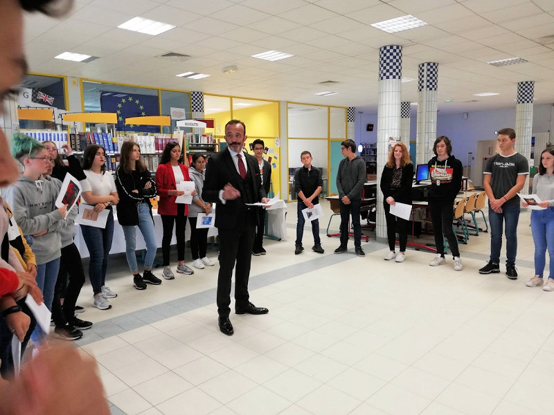 Réunis au CDI par M. Storz, proviseur, et Mme Cutzach et Mme Diez, professeures initiatrices du projet, les élèves ont présenté les livres qu'ils