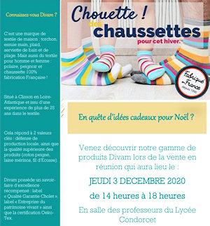 Jeudi 3 décembre de 14h à 18h, la classe de BTS NDRC 2 a organisé une animation en salle des professeurs pour présenter les produits de l'entreprise DIVAM, société française spécialisée dans le linge de maison.
