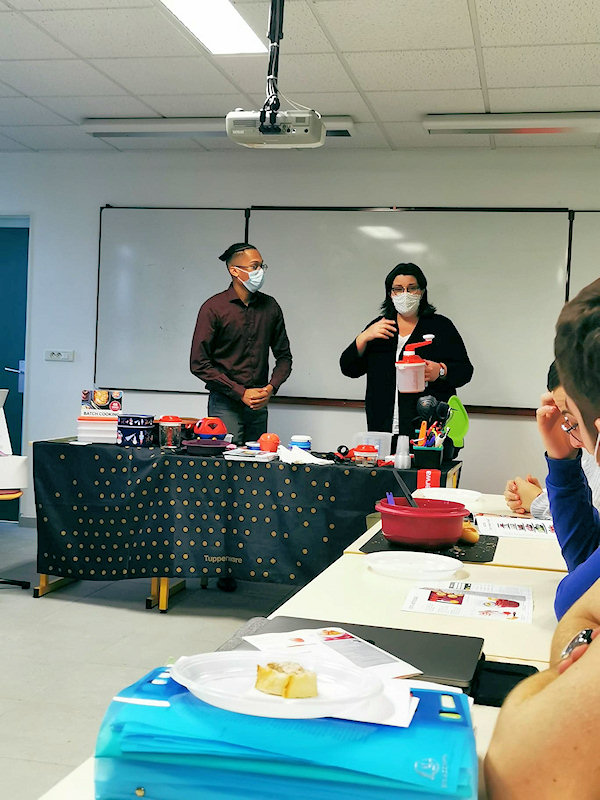 Mardi 10 novembre, de 10h à 12h, la classe de BTS NDRC 2 a assisté à la vente en réunion de Enzo accompagné de l'ambassadrice Agnès, pour présenter la marque Tupperware sous forme d'atelier culinaire.