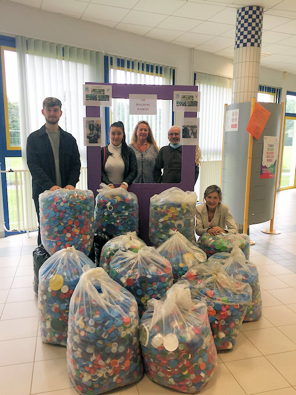 Le 23 juin 2021, le Président de l'Association "LES BOUCHONS D'AMOUR", Monsieur DE DECKER, est venu chercher 15 sacs de bouchons, que nous avons collectés durant cette année, à l'ESPACE SCOLAIRE CONDORCET.