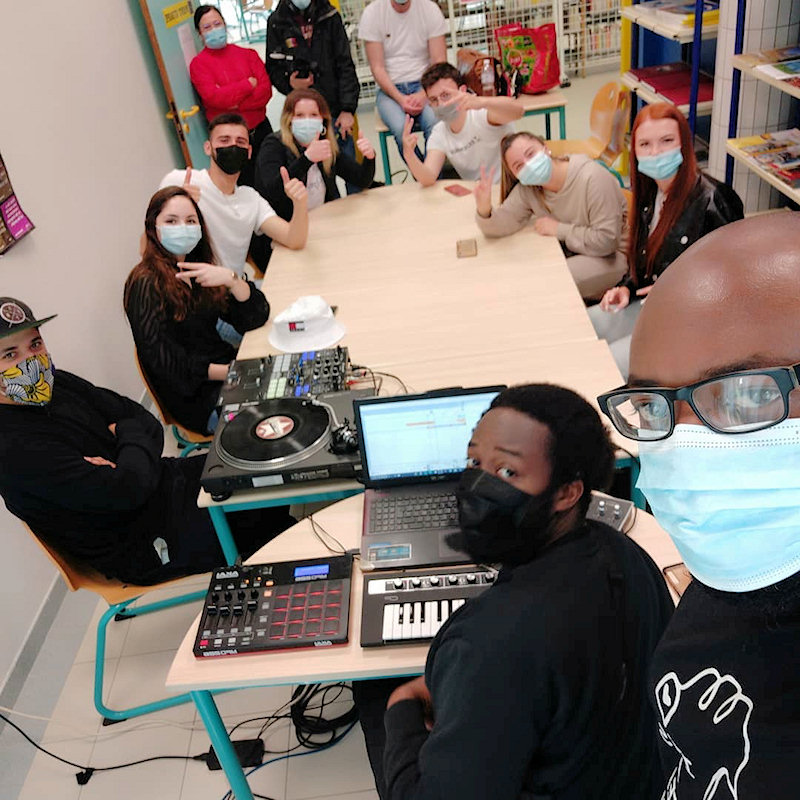 Jeudi 27 mai, le groupe Feini-X Crew est venu dans notre établissement pour un showcase d'une heure, suivi d'un atelier de création.