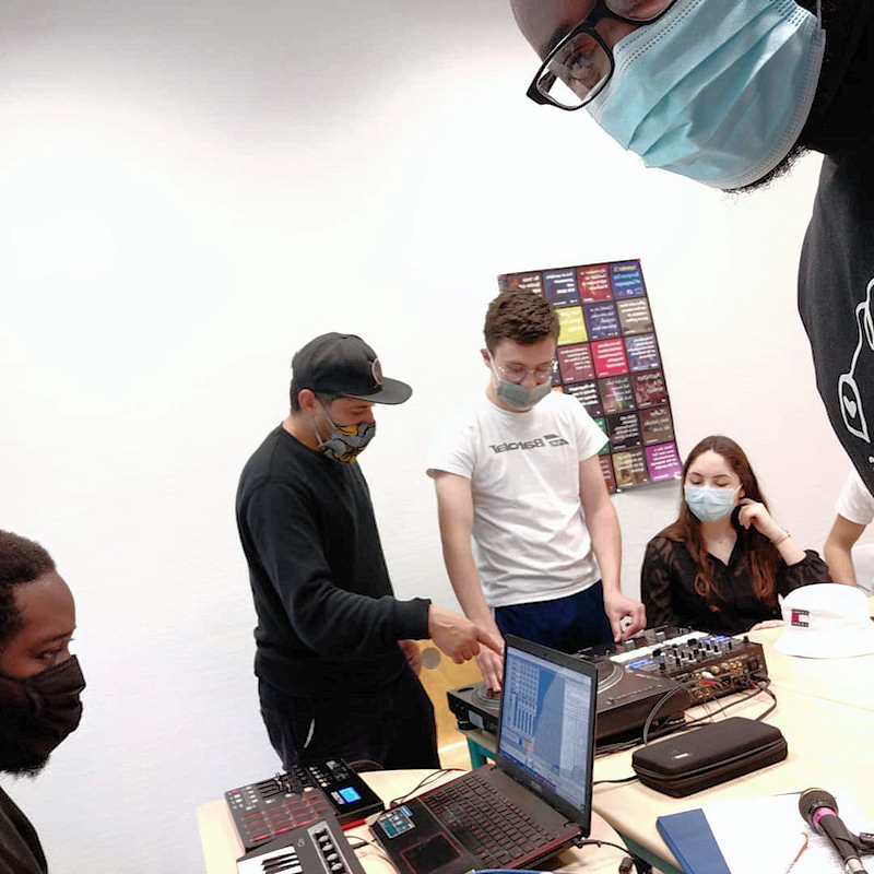 du groupe maubeugeois Feini-X Crew suivi d'un atelier d'initiation aux musiques actuelles avec les artistes.