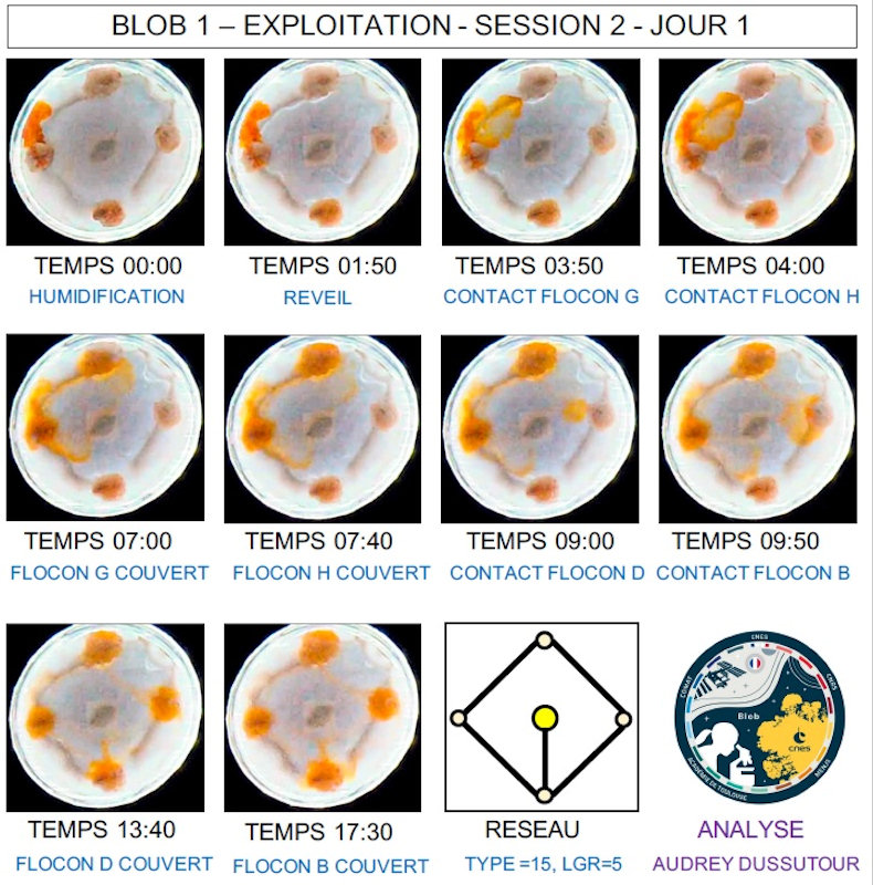 Thomas Pesquet a réalisé deux fois les expériences dans l'espace, qui ont globalement bien fonctionné. Les résultats, disponibles sur le site de la mission alpha, sont conformes aux attentes : un réveil rapide des blobs, une exploration de l'ensemble de la boite et la formation de structures tridimensionnelles, attendues en raison de l'absence de pesanteur.
