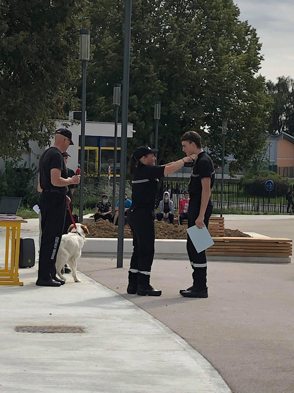 Suite au stage de cohésion et de survie effectué par les élèves de première Bac Pro Métiers de la Sécurité en juin dernier, le Brigadier Chef principal J-Y Olivier ainsi que les deux enseignantes de la spécialité ont tenu à valoriser leur performance en organisant une remise de diplômes.