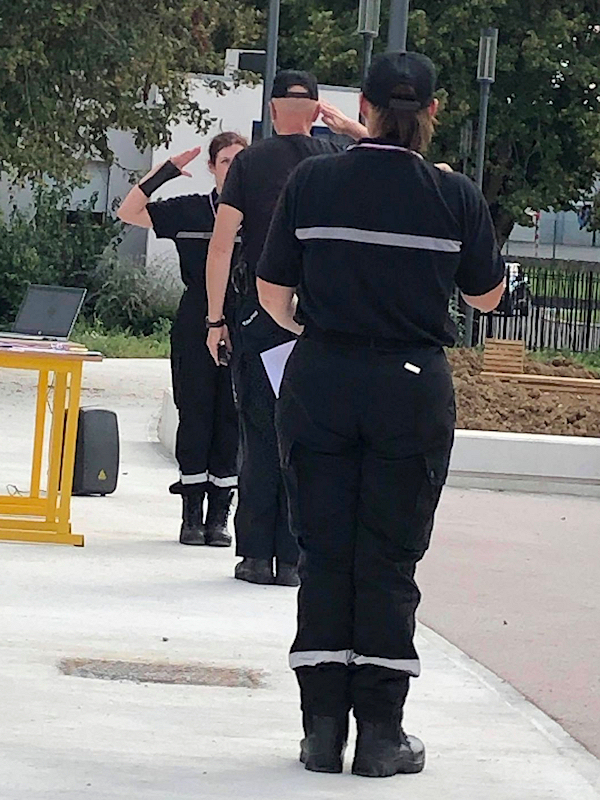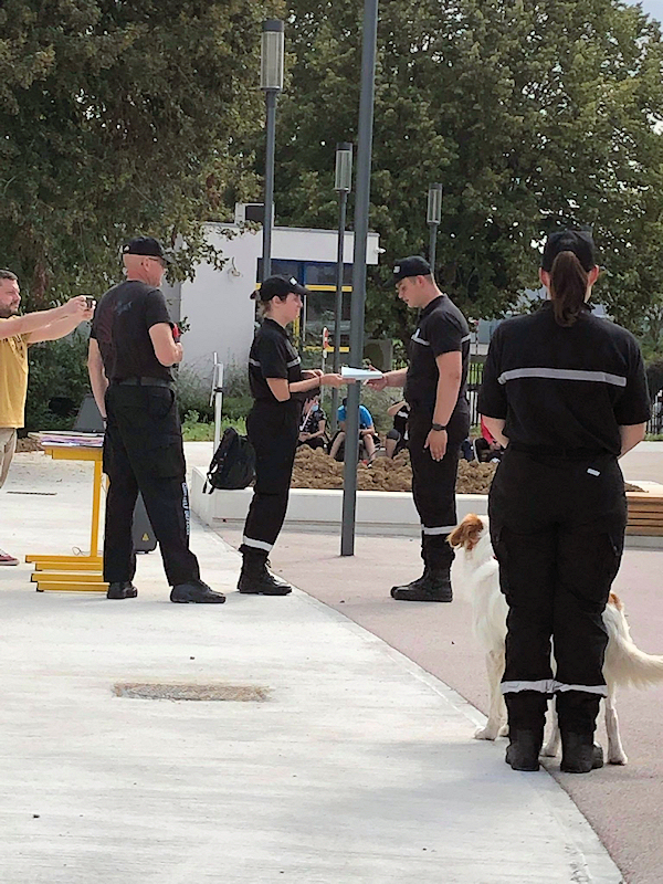 se sont vu remettre leur diplôme et une douille gravée au nom et date du camp par les encadrants : M. J-Y Olivier, brigadier chef principal, Mme S.