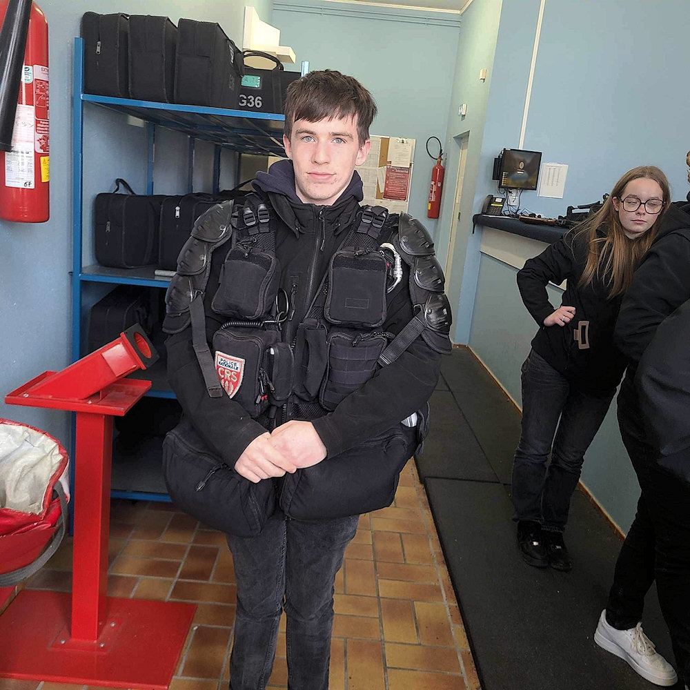 Le jeudi 18 avril 2024, les élèves de 2nde Bac Pro Métiers de la Sécurité ont rendu visite à la compagnie de CRS 21 (Compagnie Républicaine de Sécurité n°21, basée à Saint-Quentin).