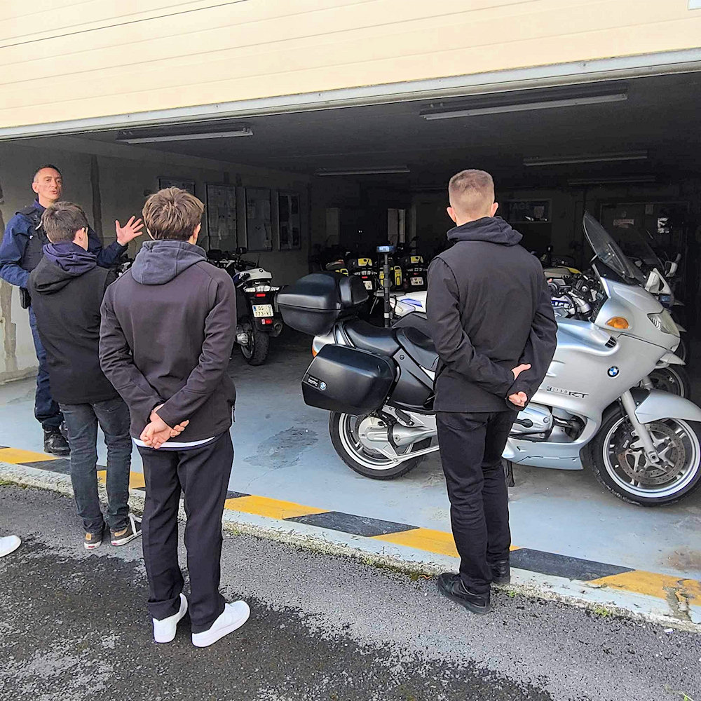 La journée a démarré par une présentation générale de la police nationale puis par celle plus spécifique sur les CRS. Par la suite, la classe a été séparée en 4 groupes afin de faire différents ateliers qui étaient les suivants :