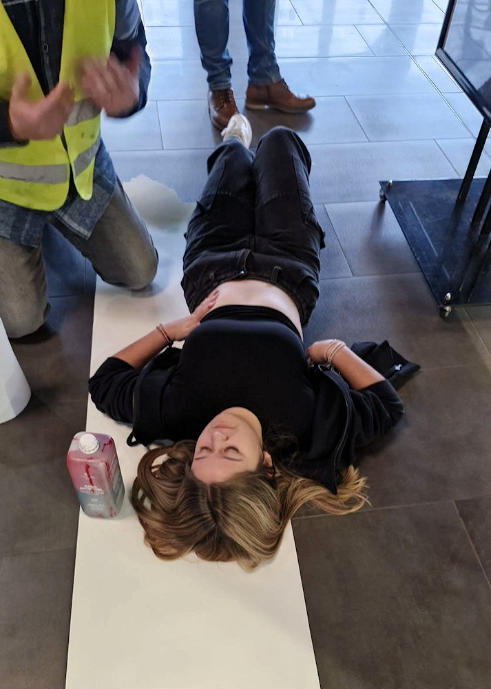 Certains élèves, choisis pour jouer le rôle de victime, ont tout d'abord été maquillés pour offrir une situation réaliste