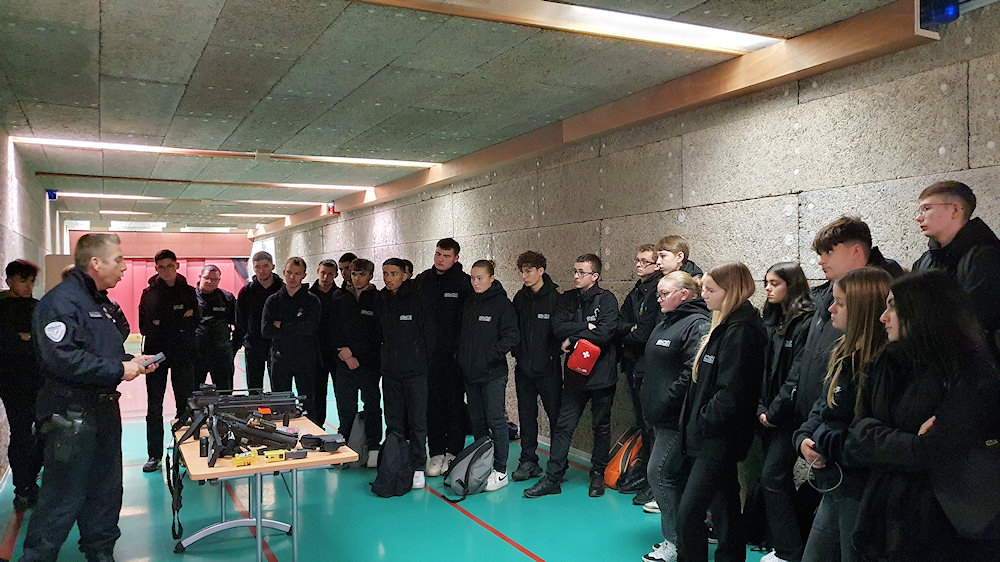 L'après-midi, le groupe MS a pu bénéficier d'une visite du pas de tir servant pour les entrainements règlementaires ainsi que d'une présentation de l'armement de dotation des unités de la police.