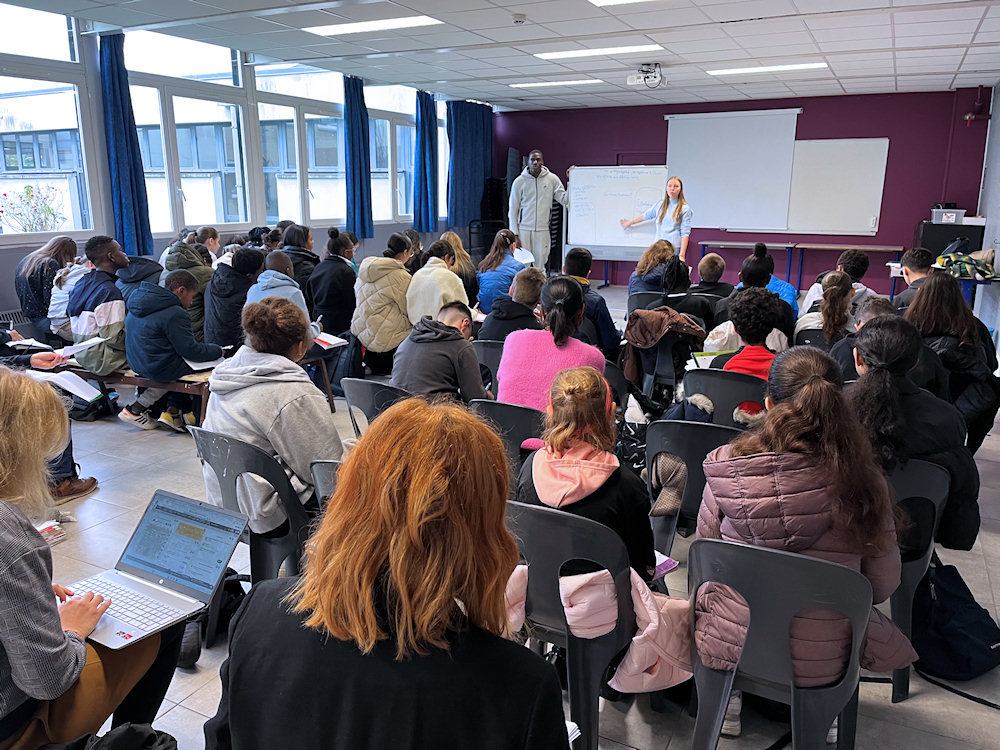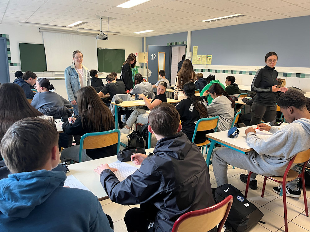 4me du Collège Hanotaux et 3 classes de 5me du Collège Montaigne. Lucie, Louna et Matisse (étudiants) sont intervenus dans les différentes