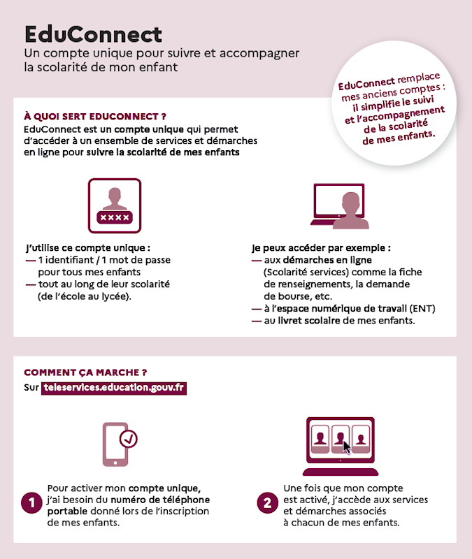 Les familles ne disposant pas de leurs codes Educonnect peuvent de se rapprocher du secrétariat des